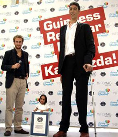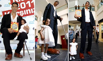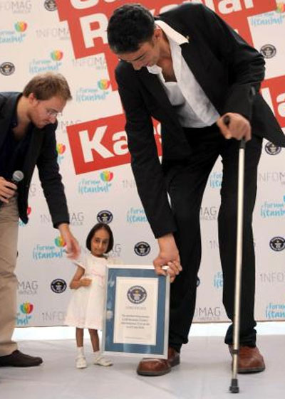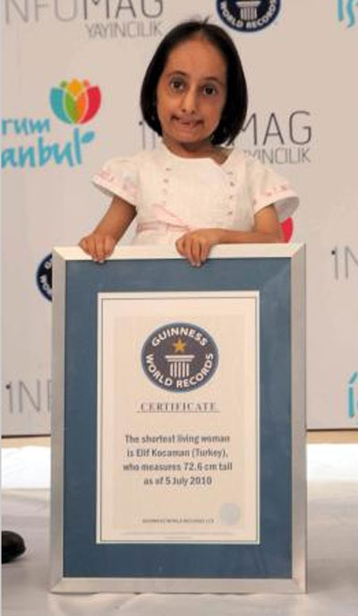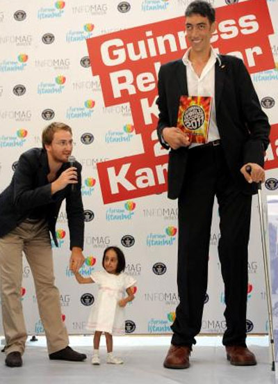 اقصر انسان على وجه الكرة الأرضية.. فتاة تركية! ![]() طولها 72.6 سم فقط فهي لا تصل يد الباب حتى، هذه هي الطفلة التركية "أليف قوجه مان" التي دخلت موسوعة جينيس كأقصر انسان على وجه الأرض، وكان المواطن التركي "سلطان كوسم" قد دخل موسوعة جينيس كأطول رجل في العالم منذ عامين، وأفادت الأنباء أن هيئة تحكيم موسوعة جينيس الدولية قامت بقياس قامة أليف وأعلنت فوزها وتسجيلها كأقصر إنسان على مستوى العالم. وأقيم بهذه المناسبة حفل لتسليم "شهادة جينيس" إلى "أليف" بحضور "سلطان كوسم" أطول إنسان في العالم، وأبدت "أليف" التي ظهرت لأول مرة أمام عدسات الكاميرات سعادتها البالغة من دخول تركيين في موسوعة جينيس كأطول وأقصر إنسان في العالم مشيرة إلى أن هذا يعد دعاية جيدة لتركيا. ومن المتوقع أن ُيسجل أقصر إنسان على وجه الأرض باسم "أليف" في نسخ كتاب موسوعة جينيس عام 2011 م التي يصدر سنوياً باللغة التركية بعد تسجيل لقب أطول رجل في العالم باسم "سلطان" عام 2008. ![]() ![]() ![]() ![]() ![]() ![]() ![]()