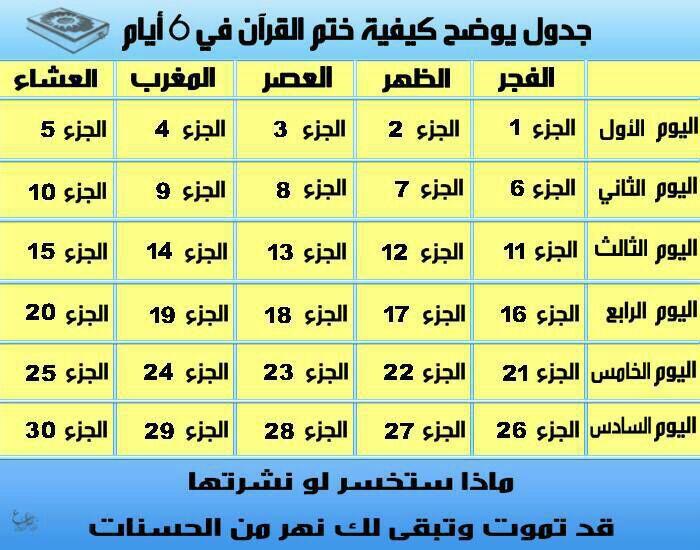 لو رتبت لك جدولاً لحفظ كتاب الله وحفظت في كل يوم أقل من وجهين لأمكنك حفظ كتاب الله u في سنة ولو حفظت كل يوم أقل من صفحة وربع لحفظت كتاب الله في سنتين اثنتين فقط!!ولا تستكثر هذا الرقم فلك سنوات مضت ذهبت أدراج الرياح !!كم حفظت فيها من آية ؟! ......والسؤال نحوك والإجابة منك !!